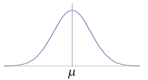 ■ 분포 형태는 다음 그림과 같이 평균 근처에 데이터의 개수가 많고, 평균에서 멀어질수록 개수가 적어진다.