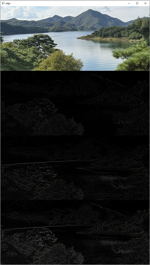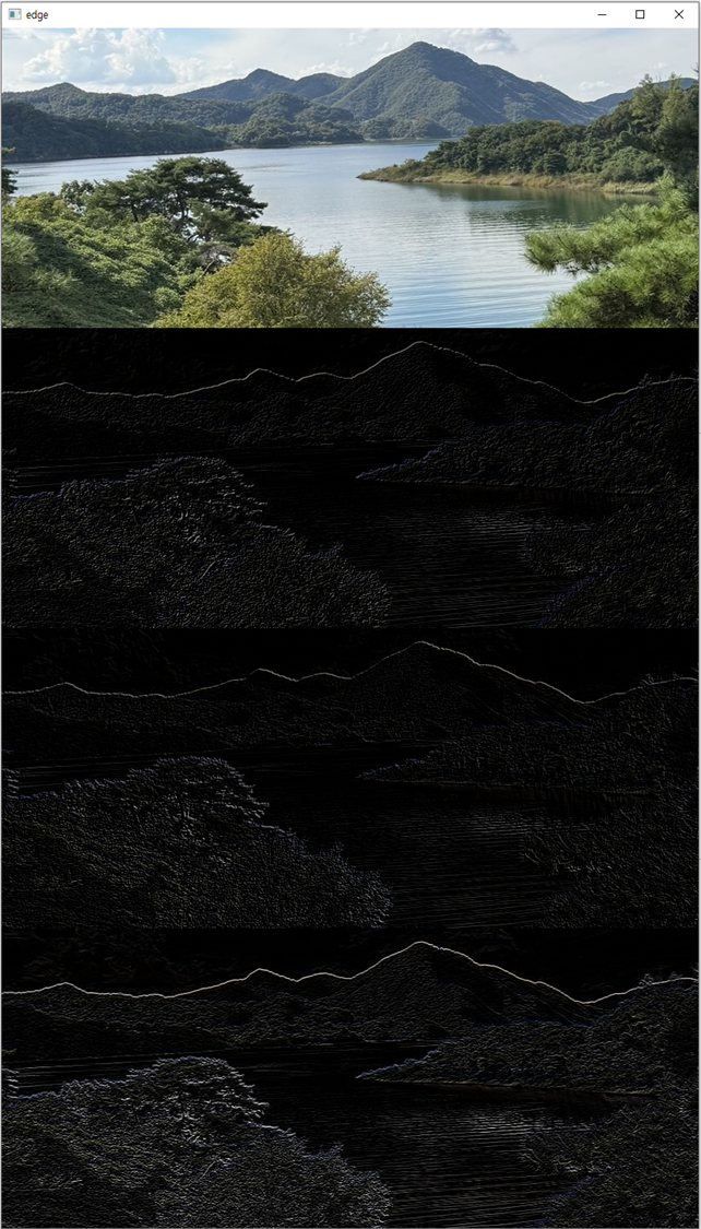 - 파라미터에 ksize가 없는 것을 제외하면 모든 파라미터는 cv2.Sobel()과 동일하다.