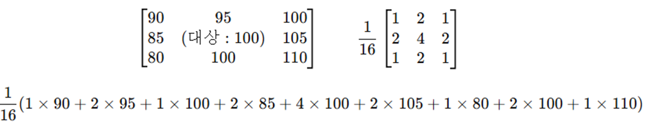 - 커널의 모든 원소의 합이 16이기 때문에 16으로 나눠준다.