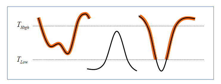 - high보다 큰 그래디언트 값을 갖는 픽셀은 항상 엣지의 픽셀로 판단하고 low보다 작은 그래디언트 값을 갖는 픽셀은 엣지 픽셀이 될 수 없는 픽셀로 판단한다.