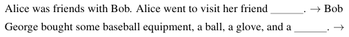 ■ 이 실험에서 zero-shot과 one-shot은 위에서 언급한 것처럼 설정하였다. 단, few-shot의 경우 아래 예시 그림처럼 'fill in the blank' format을 examples로 사용하였다.
