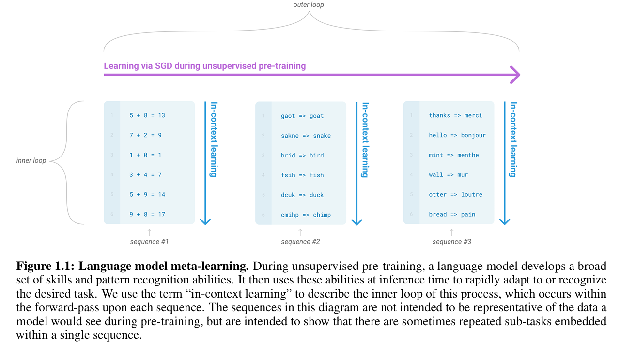 ■ GPT-3 논문에서 파인튜닝 없이 새로운 태스크 학습을 위해 사용하는 개념 중 하나는 메타 학습(meta-learning)이다.