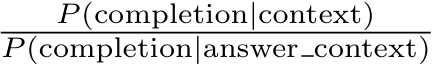 - 구체적으로, 분자는 context에서 해당 completion이 나올 확률이지만,