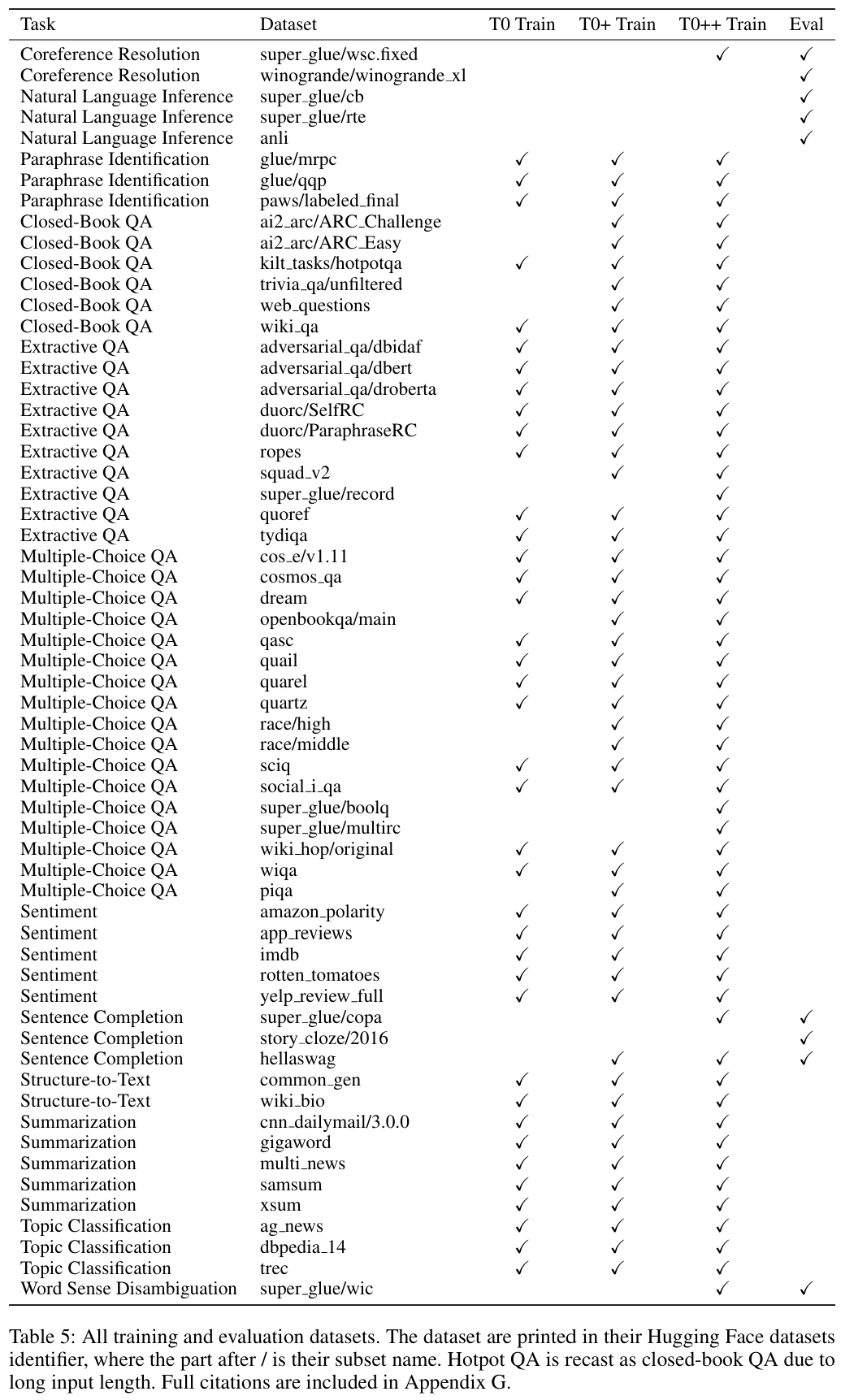 ■ T0는 섹션 3과 아래의 Table 5에 기술된 multitask mixture data로 훈련된다.