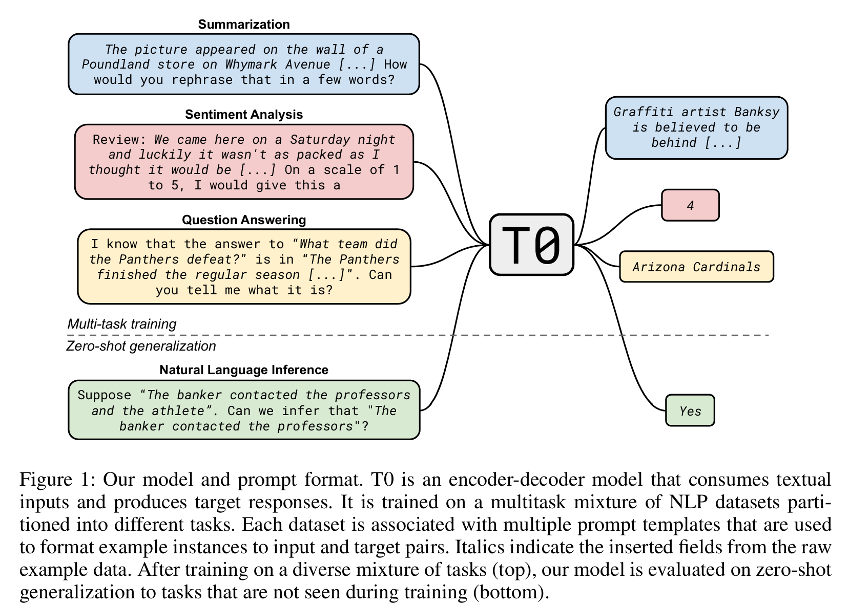 - (1) multitask prompted training이 unseen task에 대한 generalization 능력을 향상시킬 수 있는가