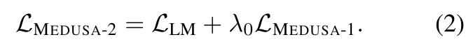 - Medusa-2는 모델의 next token 예측 능력과 출력 품질을 손상시키지 않으면서 Medusa heads와 backbone model을 함께 training하는 방법이다.