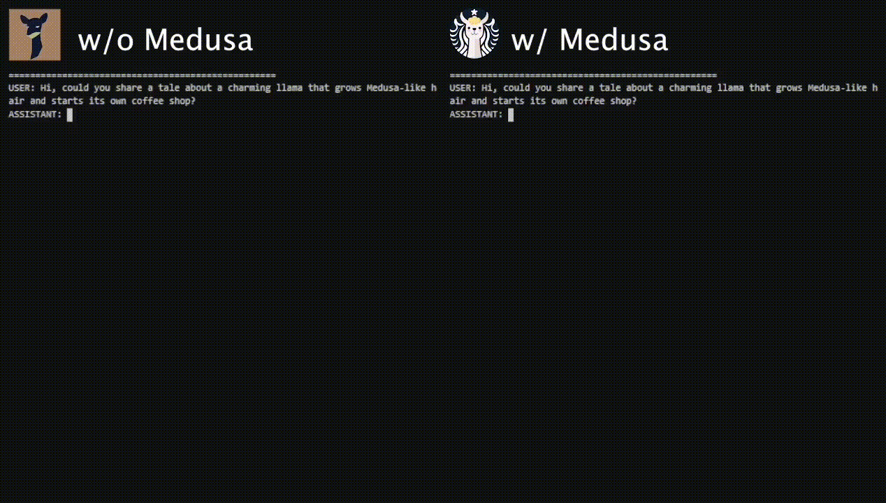 - Medusa heads만 파인튜닝하는 Medusa-1은 quality를 손상시키지 않으면서 2.18배의 속도 향상을 달성하였다.