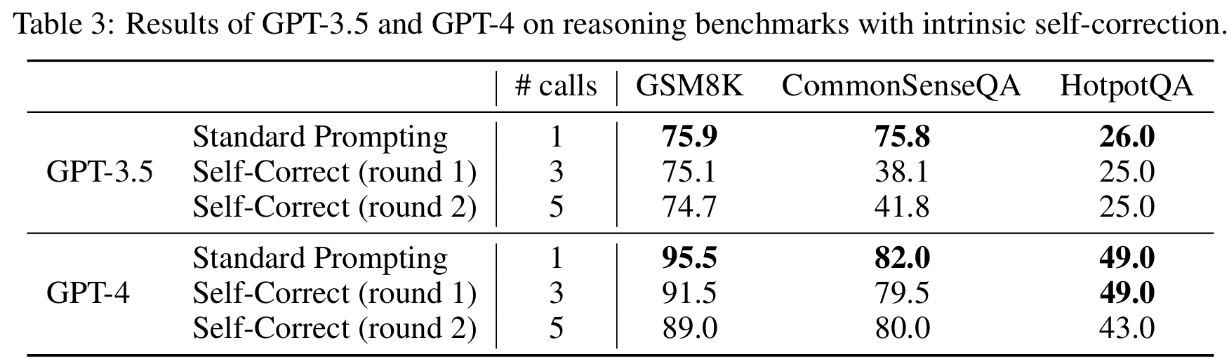 3. LLMs CANNOT SELF-CORRECT REASONING INTRINSICALLY