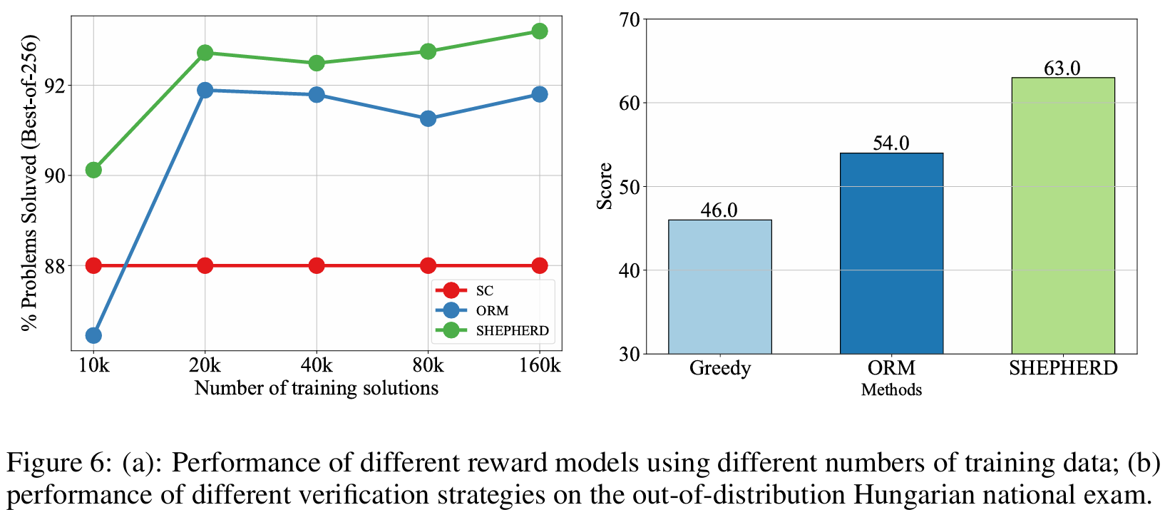 ■ Fig 6 (a)는 training data의 양에 대한 실험 결과이다. PRM은 ORM보다 적은 데이터를 사용해도 성능 우위를 가진다.