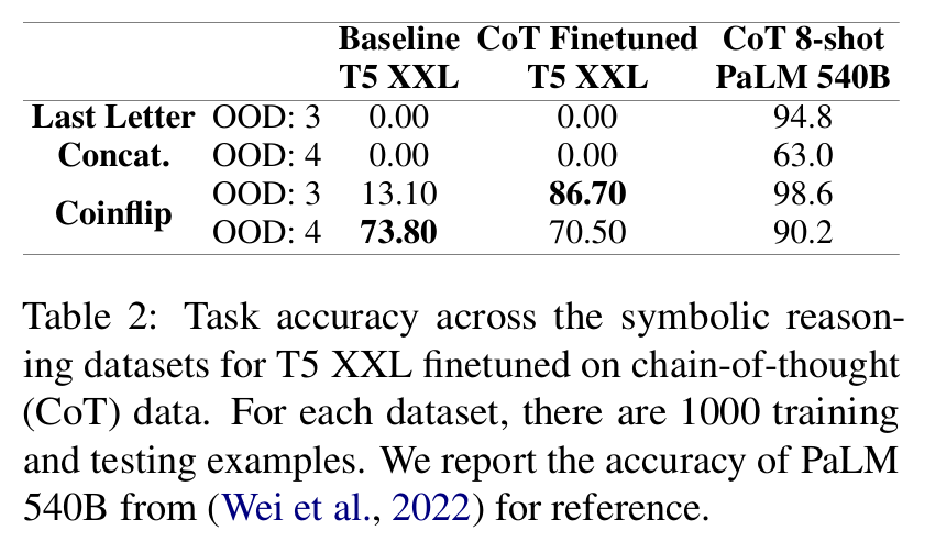 ■ last letter concatenation과 coinflip을 통해 symbolic reasoning ability를 테스트한다.
