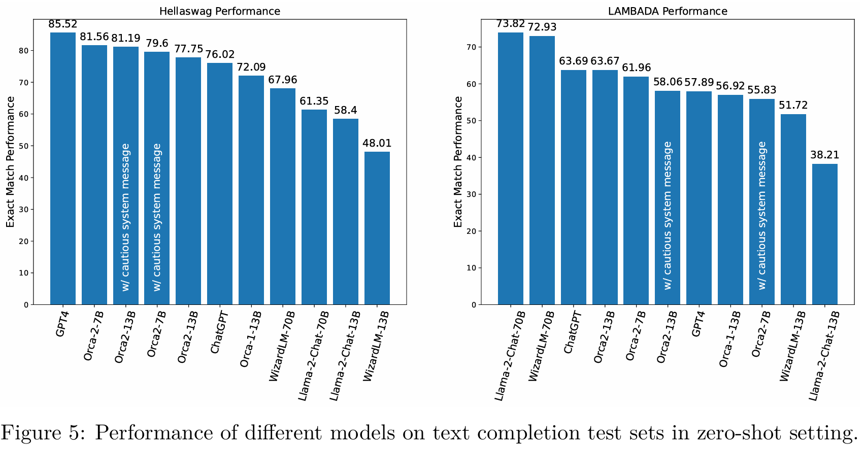 ■ 그리고 Orca 2는 system instructions에 따라 성능이 달라진다. 또한 모델 크기로 인해 non-deterministic responses 생성으로 이어질 수 있다.