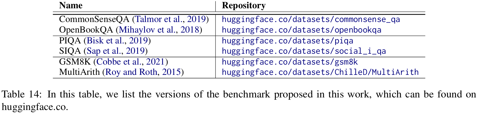 ■ SIQA, PIQA, CSQA, OBQA의 경우 target classes이 균등하게 분포된 4,000개의 examples을 training data로 사용하고, 허깅페이스에 있는 validation versions을 test data로 사용한다.