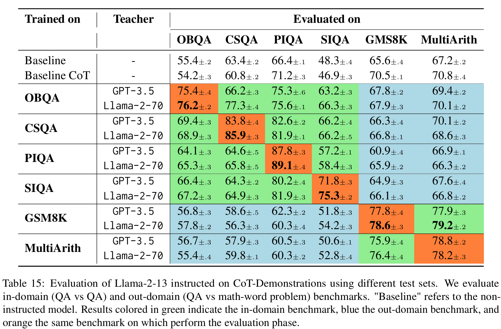 ■ CoT-Demonstrations을 통한 Instruction-tuning은 student model이 in-domain과 out-domain tasks를 모두 커버할 수 있게 한다.
