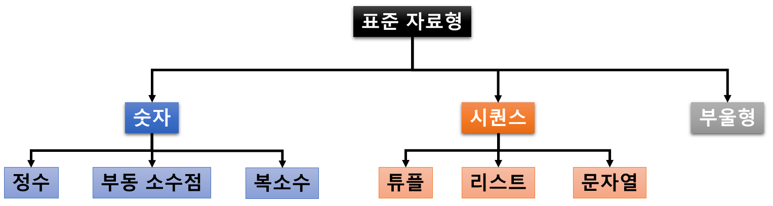 ■ 데이터의 종류를 자료형(data type)이라고 한다. 파이썬에는 다음과 같은 다양한 자료형들이 제공된다.