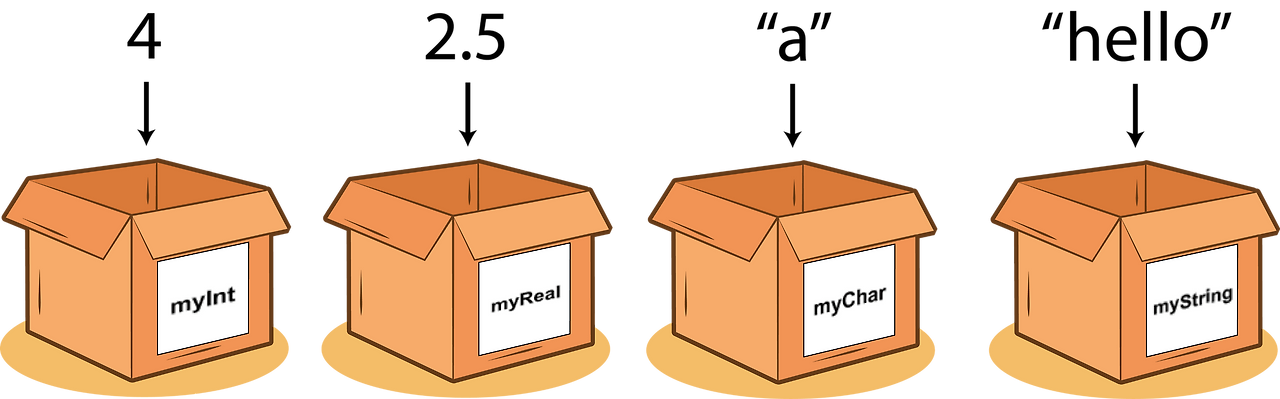 ■ 변수는 다음과 같이 데이터 값을 보관하고 있는 이름이 붙어진 상자로 생각할 수 있다.